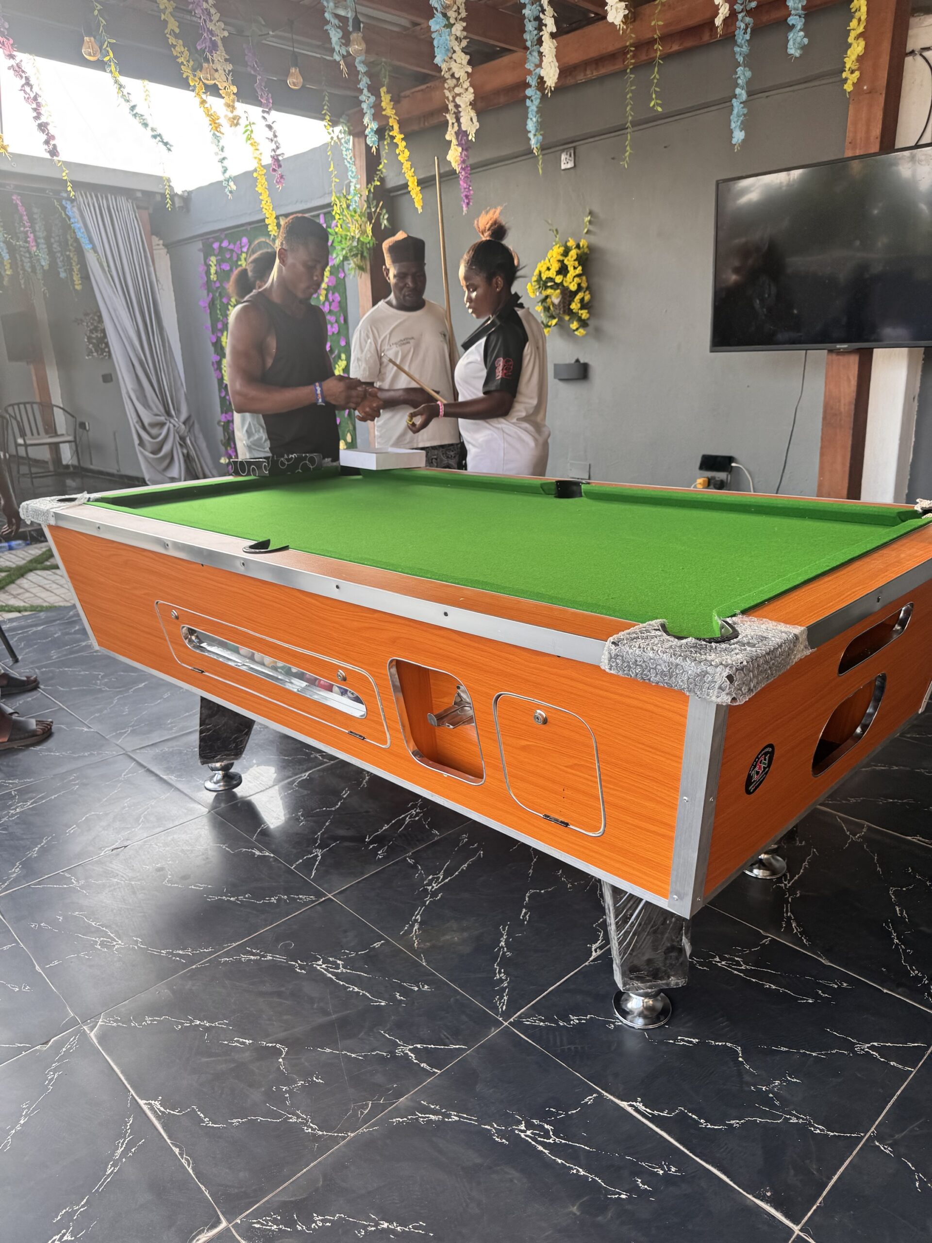 This is a Made in Nigeria 7ft HDF Commercial Coins Operated Snooker pool.